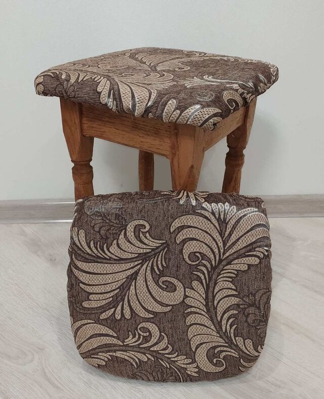 НАБІР: 4 ЧОХЛА З ПОРОЛОНОМХарактеристики: Розмір:для табуреток від 30 до 35 см. Кріплення: за допомогою резинки. Тканина: зносостійка меблева тканина Догляд: можна прати окремо від поролону